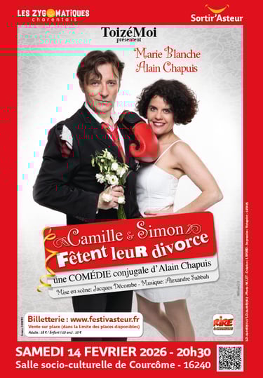 Sur scène, le duo hilarant Alain Chapuis (le célèbre tavernier de Kaamelott) et Marie Blanche, pétillante et incisive, manient l'humour conjugal avec une finesse décapante.