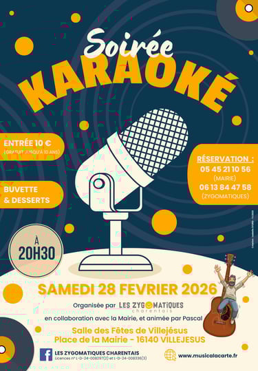 Le samedi 28 février, Pascal vous attend pour une animation karaoké conviviale et festive. Que vous soyez chanteur confirmé, amateur enthousiaste ou simple spectateur, cette soirée est l’occasion parfaite pour partager un moment musical, rire, oser, et profiter d’un véritable temps de détente entre amis ou en famille.